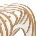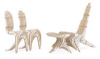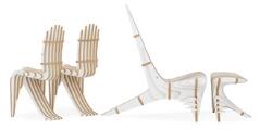 “Peak”. Lounge chair, a pair of side chairs and stool of laminated birch veneer. Manufactured by Peter Qvist Lorentsen, Hornbæk. (4)