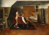 Interior from a studio with the artist and his model. Signed and dated with monogram 1909. Oil on canvas. 134×177 cm.