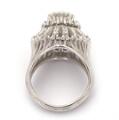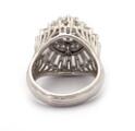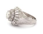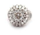 Diamantring af platin prydet med brillantslebet diamant på ca. 1.50 ct. omkranset af talrige brillant- og baguetteslebne diamanter. Farve: F-H. Klarhed: VVS-VS. B. 18 mm. Str. 52.