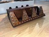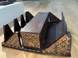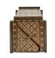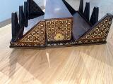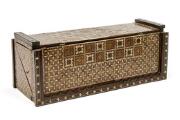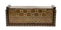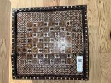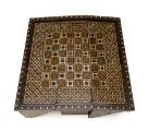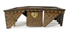 Syrian folding chessboard with drawer decorated with inlays of coloured wood and camel bone. C. 1900. 46×46×14 cm. (18×18×46 cm)