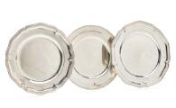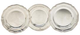 Tre danske dækketallerkener af sølv. 20. årh. Vægt 1229 g. Diam. 24–26 cm. (3)