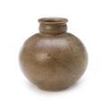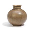 Rund vase af stentøj dekoreret med gråbrun glasur. Sign. monogram, 44. H. 15,5.
