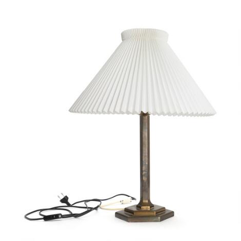 Dansk design: Bordlampe af bronze med sekskantet fod og stamme. 1920'erne. H. inkl. skærm. 63.