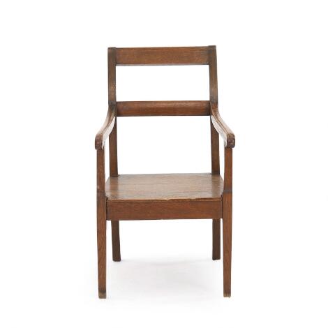 Fisker Jeppe Iversen: Barnestol af patineret eg. Udført af Fisker Jeppe Iversen, 1890.