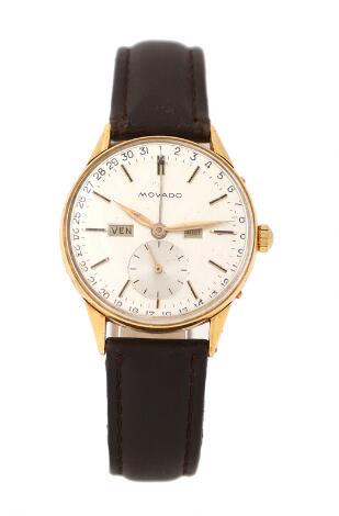 Movado: A wristwatch of 18k gold. Ref. 4776. Mechanical movement with manual winding and calendar. 1950s.