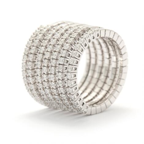 A flexible diamond ring set with numerous brilliant-cut diamonds, mounted in 18k white gold. Size app. 53.