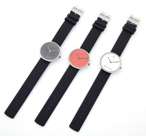 Timothy Jensen: Three wristwatches. Pure Raven, Pure Snow and Pure Chili. 2020s.