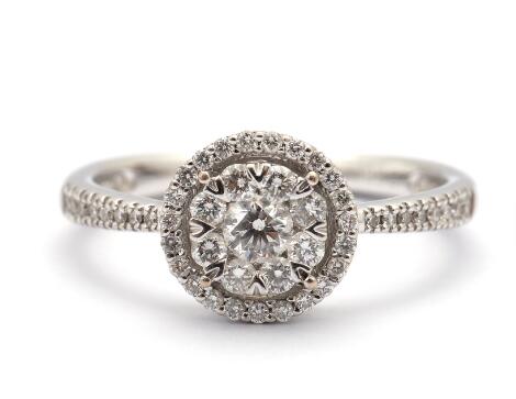 A diamond ring set with numerous brilliant-cut diamonds, mounted in 18k white gold. F-G/SI. Size 53.