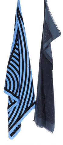Louis Vuitton: A set comprising two scarves each in blue colours. App. 26 x 117 cm and 86 x 86 cm. (2)