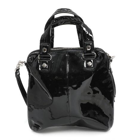 Marc Jacobs: A black vernis bag with silver tone hardware, two handles and adjustable shoulder strap.