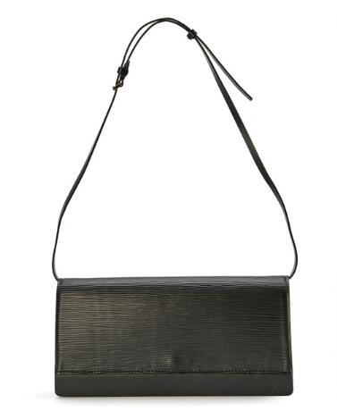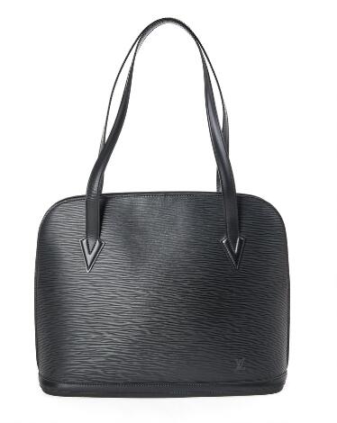 Louis Vuitton: A "Lussac" bag of black Epi leather with gold tone hardware and two handles. 1996.