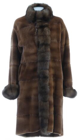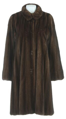 Birger Christensen: A brown fur jacket of mink with two pockets and button closures t the front. L. app. 110 cm.