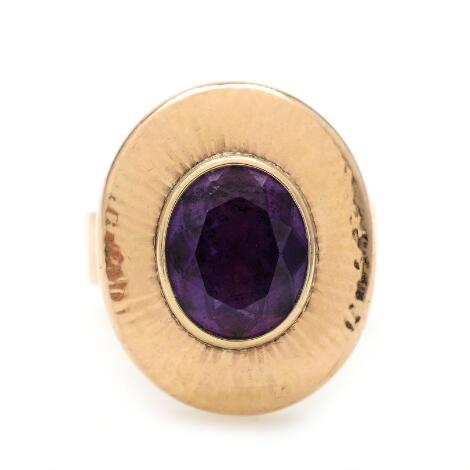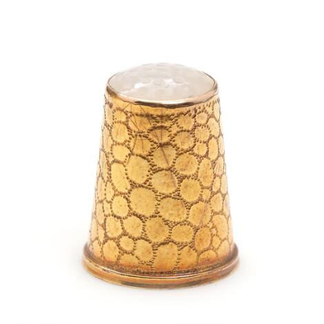 A thimble set with a cabochon moonstone, mounted in 14k gold. H. 2.2 cm.