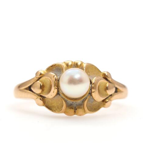 Georg Jensen: A pearl ring set with a cultured pearl, mounted in 14k gold. Design no. 272. Georg Jensen 1933-44.