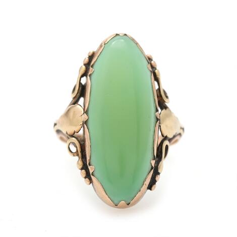 Viggo Wollny: Agate ring set with green agate, mounted in 12k gold. Size 51.