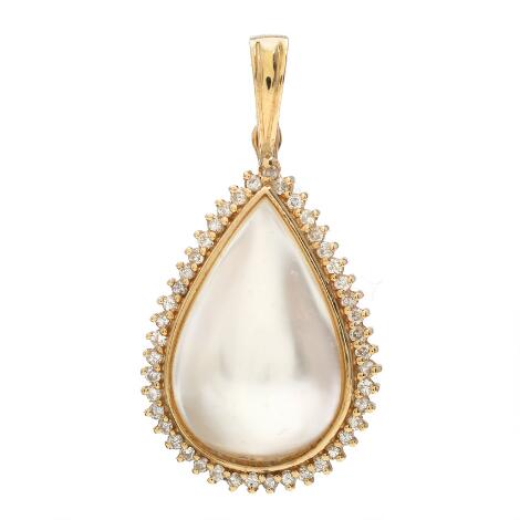 A mabé pearl- and diamond pendant set with mabé pearl and diamonds, mounted in 14k gold. L. 4 cm.