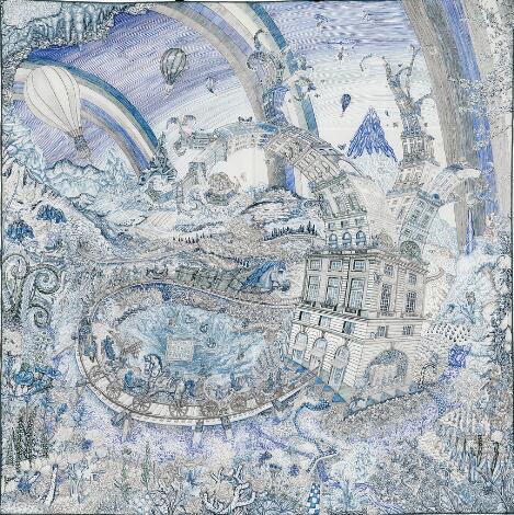 Hermès: A silk scarf with motif "Les Folies du Faubourg" by Elias Kafouros. App. 85 x 85 cm.