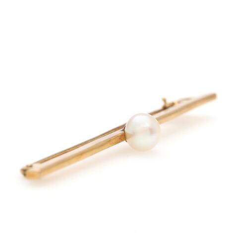 A pearl brooch set with pearl, mounted in 14k gold. L. 5.5 cm.