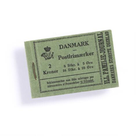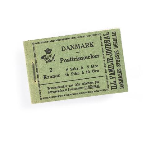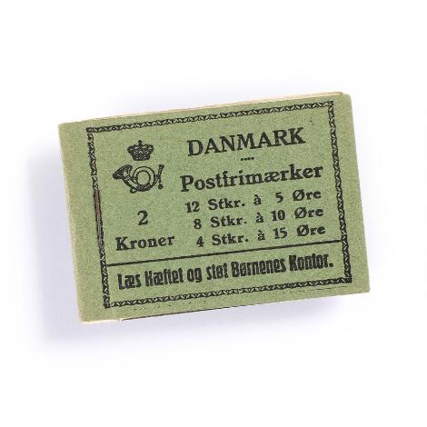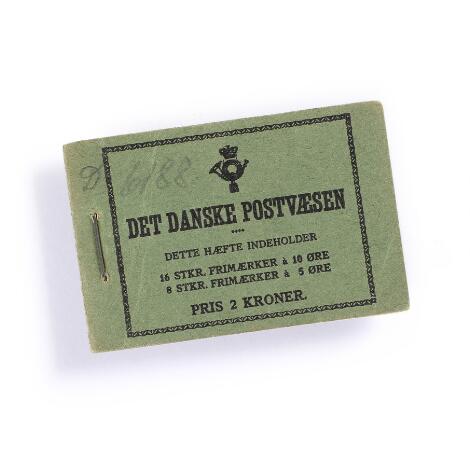 1933. 2 kr. PRØVEHÆFTE. Godkendt af Generalpostdirektoratet med violet ovalstempel + signering 11/1-39. Stor sjældenhed. Desuden færdig udgivet 2 kr. hæfte 1939
