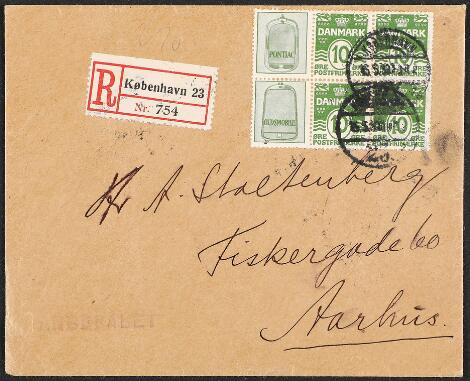 PONTIAC+OLDSMOBILE. Block of 6 with 4 x 10 øre on rec. cover from KØBENHAVN 15.5.30 sendt to Aarhus. Cert. Lasse Nielsen.