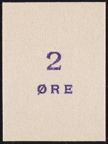 1919. 2/5 øre. Imprint made with the original marker in purple colour on a small piece of thick carton. Originates from the well-known Danish stamp-expert,