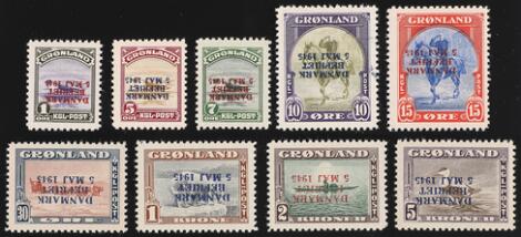 1945. Danmark Befriet. INVERTED OVERPRINT. Complete MNH set. Cert. Nielsen