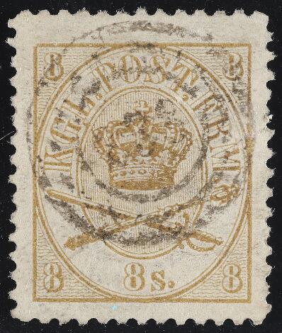 238. 1864-issue, 8 sk. lineperf. (c. 1870) pos. 63. Very fine copy with very rare numbercancellation 238 "THORSHAVN". New found rarity! Cert. Lars Jørgensen