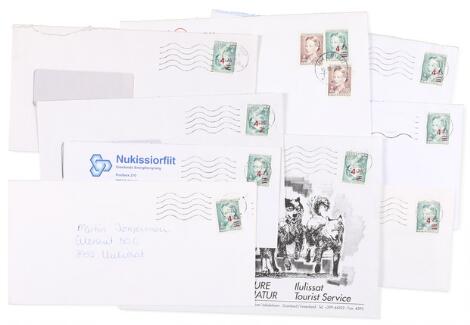 Greenland. 1996. Dr. Magrethe, surcharged. Small collecion on envelopes with in all 9 entires where no less then 3 is with INVERTED OVERPRINT!! Fine condition.