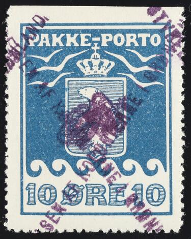 1919. Chr. X, 2/5 øre + 5 øre. Klip med 5 øre, annulleret med stjernstempel NOLSØ og OPFRANKERET med 2/5 øre i Thorshavn. Klip sammensat. 1 af kun 2 kendte klip