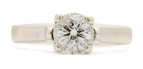 A solitaire diamond ring set with a brilliant-cut diamond weighing app. 0.88 ct., mounted in 14k white gold. Size 51.