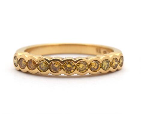 Hartmann's: A diamond ring set with yellow diamonds weighing a total of app. 0.62 ct., mounted in 18k gold. Size 55.