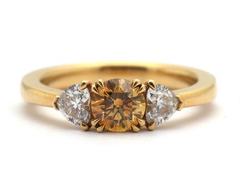 Hartmann's: A diamond ring set with a brilliant-cut yellow diamond and two diamonds, mounted in 18k gold. Size 53.