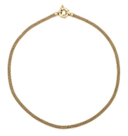 A necklace of 14k woven gold. Weight app. 19.5 g. W. 5 mm. L. app. 45 cm.
