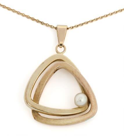 Viggo Wollny a.o.: A pearl pendant set with a cultured pearl, mounted in 14k gold. Accompanied by necklace of 14k gold. (2)