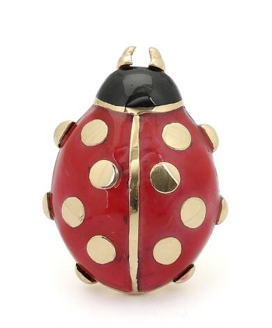 Cartier: A brooch/pin in the shape of ladybug set with red and black enamel, mounted in 18k gold. L. 16 mm.