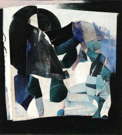 Hans Berg: Uden titel, 1990. Signeret og dateret på bagsiden. Mixed media på plade. 83 x 75 cm.