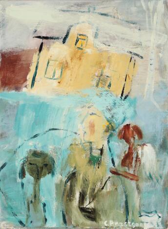 Wiliam Skotte Olsen: Komposition. Signeret WSO. Olie på lærred. 67 x 96 cm.
