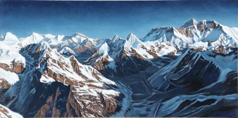 Bjørn Pierri Enevoldsen: Bjerglandskab, 2006. Signeret på bagsiden. Olie på lærred. 75 x 151 cm. Uindrammet.