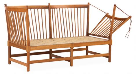 Børge Mogensen: "Tremmesofa". To pers. sofa af valnøddetræ, ene ende er justérbar. Hynder er ikke inkluderet.