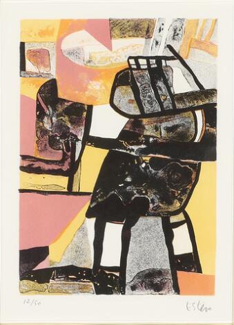 Alberto Magnelli: Komposition fra serien "L'album de la Ferrage", 1970. Sign. Magnelli, 50/50. Linoleumssnit i farver. Bladstørrelse 65 x 45.