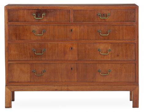 Louis G. Thiersen: Kommode af mahogni. Front med fem skuffer med greb af messing. H. 75. B. 98. D. 40.