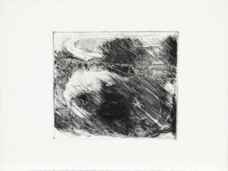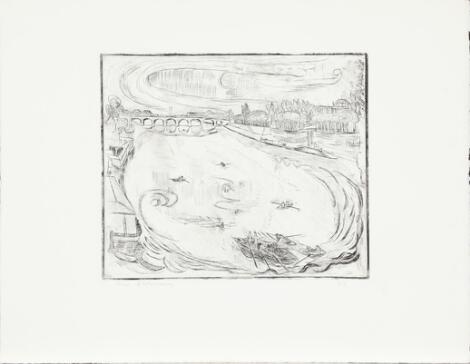 Max Beckmann, efter: "Mainlandschaft". Betegnet Max Beckmann; probe, stemplet og signeret på bagsiden "Max Beckmann Nachlass P. B.", signeret Peter Beckmann.