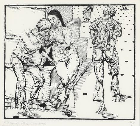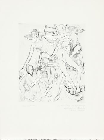 Max Beckmann, efter: "Garderobe". Betegnet Max Beckmann, probe; stemplet og signeret på bagsiden "Max Beckmann Nachlass P. B.", signeret Peter Beckmann.