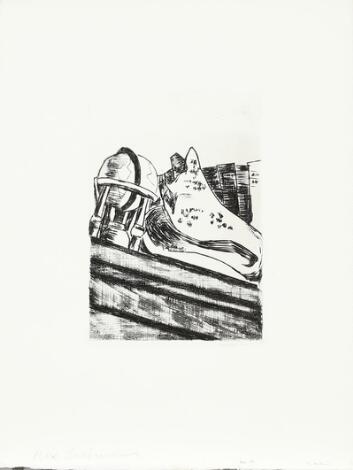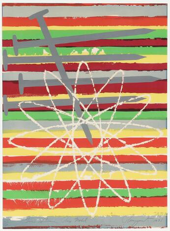 James Rosenquist: "Time Stream Prix Nobel". Signeret Rosenqvist 1975, 97/110. Litografi i farver. Bladstørrelse 75 x 55 cm.