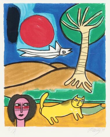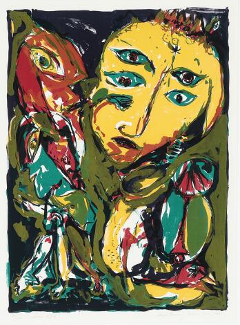 Corneille: “Soleil cou coupé”, 2001–2002. Serigrafi i farver. Bladstørrelse 81,5 × 61,5 cm. Uindrammet.