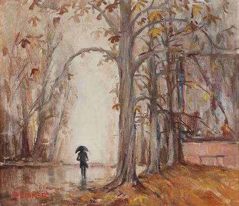 Ib Eisner: "Kastaniealleen, Dyrehaven". Signeret Ib Eisner; signeret med titel på bagsiden. Olie på lærred. 60 x 70 cm.