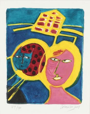 Corneille: "La maison jaune", 2001. Signeret Corneille 49/70. Relieftryk i farver. Lysmål 47 x 37 cm.