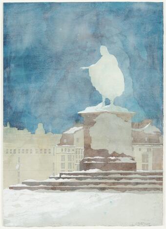 Jorge Castillo: Uden titel (Caidade La Tarde), 2014. Signeret Castillo. Akvarel på papir. Bladstørrelse 52 x 37 cm.