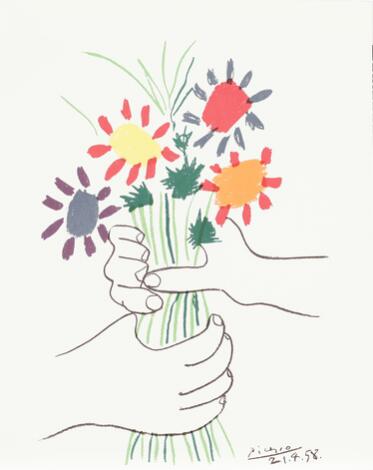 Pablo Picasso, efter: "Bouquet de Fleurs". Signeret i trykket 21.4.58. Litografi i farver. 62 x 49 cm. Uindrammet.