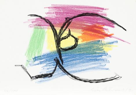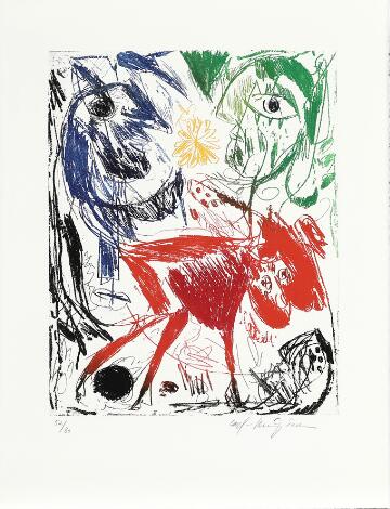 Carl-Henning Pedersen: “Solens løfte”, 1982. Signeret Carl-Henning Pedersen, Paris 1982, 35/150. Litografi i farver. Lysmål 74 × 55 cm.